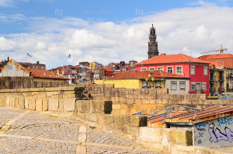 Крыши города и церковь Клеригуш, Порту, Португалия