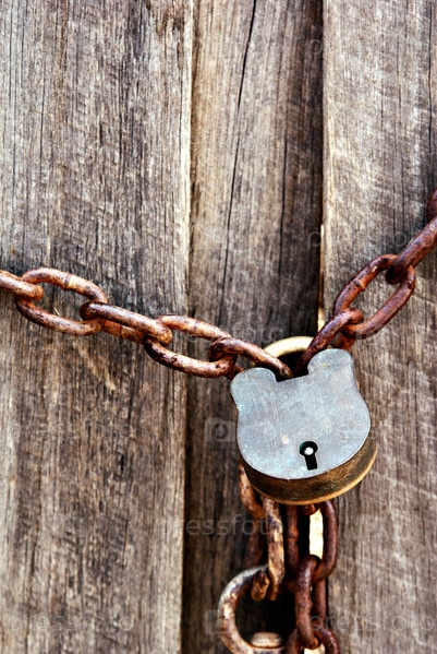 Старый замок и цепь вокруг забора