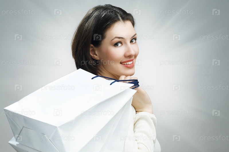 Молодая женщина с бумажными пакетами в руках
