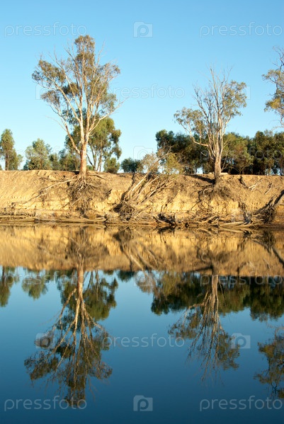 Старый деревянный дом среди деревьев на реке Мюррей