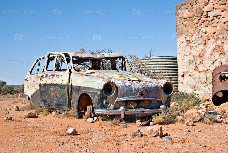 Старый автомобиль ржавеет далеко в пустыне в австралийской глубинке