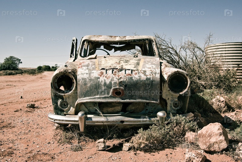 Старый автомобиль ржавеет далеко в пустыне в австралийской глубинке
