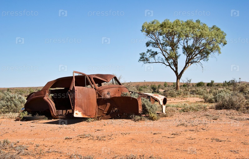 Старый автомобиль ржавеет далеко в пустыне в австралийской глубинке