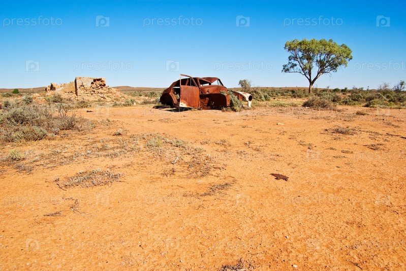 Старый автомобиль ржавеет далеко в пустыне в австралийской глубинке