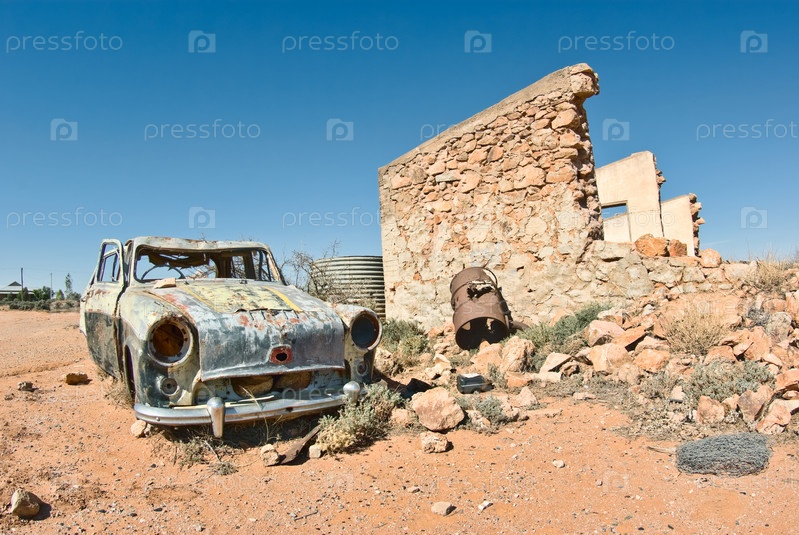 Старый автомобиль ржавеет в пустыне