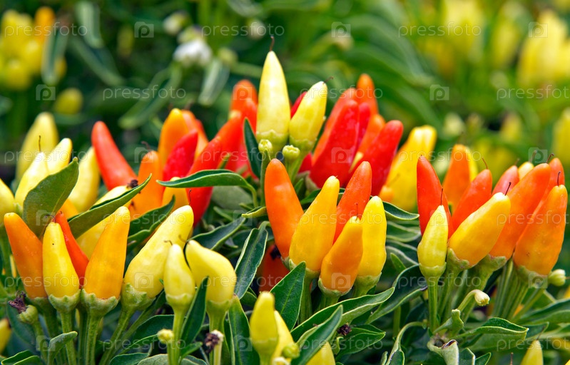 Кустт с красными, желтыми и оранжевыми острыми перцами