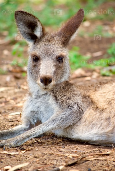 Восточный серый кенгуру лежит и отдыхает