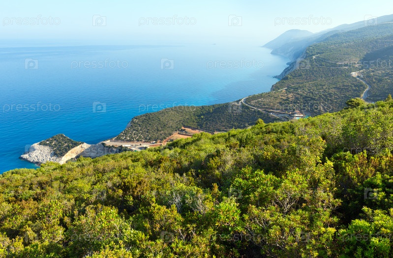 Красивые летний пляж на побережье Порто-Кацики в Ионическом море. Лефкас, Греция. Вид сверху