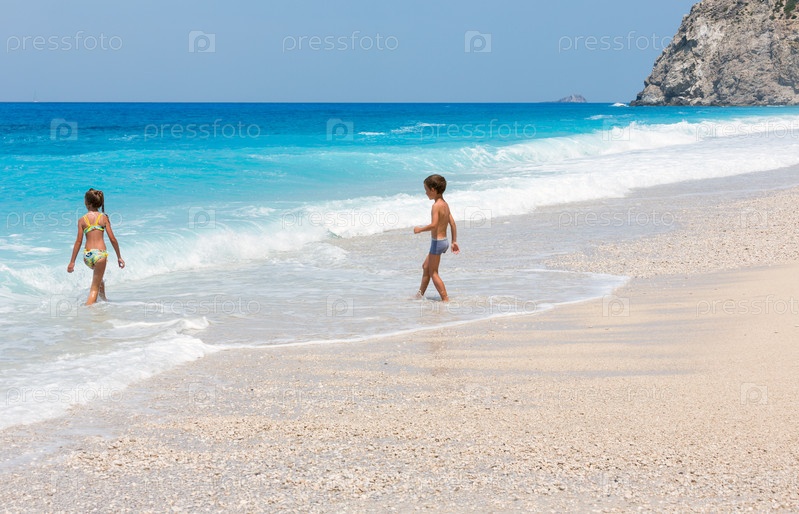 Дети на побережье Лефкас, Греция, Ионическое море