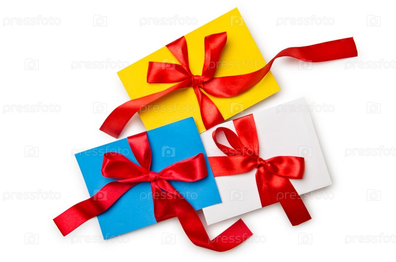 Конверт с лентой на белом фоне