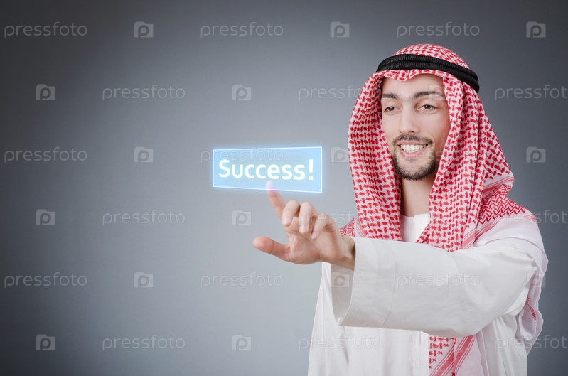 Молодой араб нажимает на виртуальные кнопки