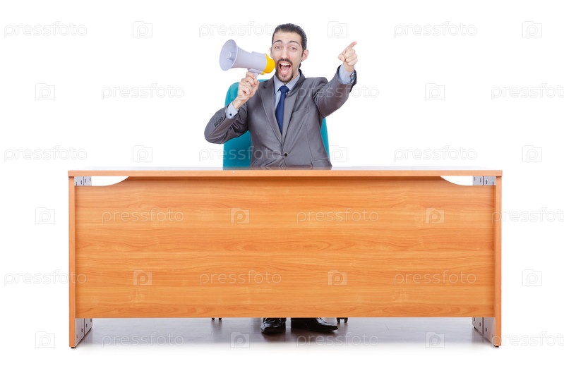 Бизнесмен с громкоговорителем на столе