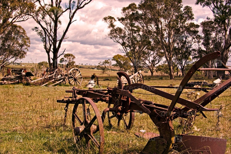 Старый ржавый плуг на ферме