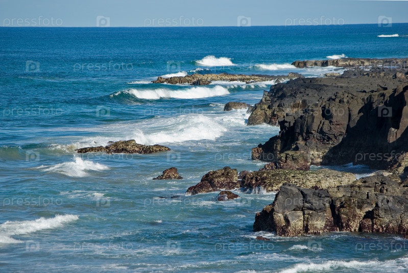 Волны разбиваются о скалы