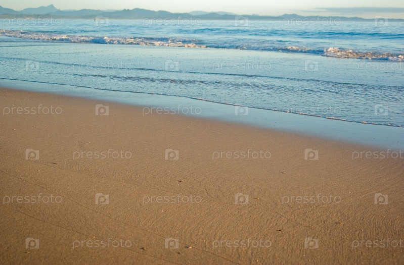 Хороший пляж с тихими волнами на песке