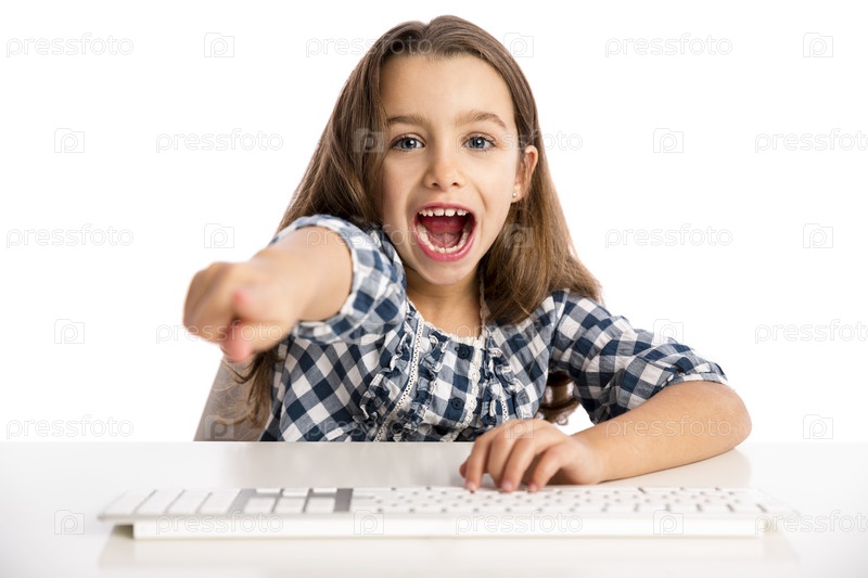 Маленькая девочка работает с компьютером