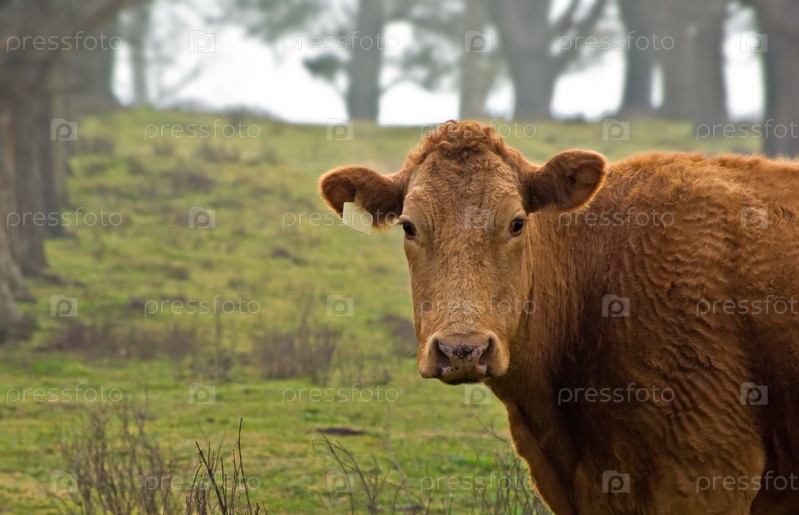Корова на ферме в туманный день