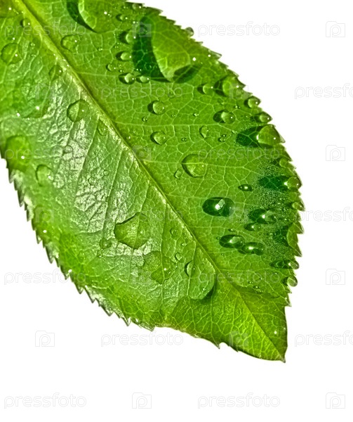 Чистая вода падает на зеленый лист