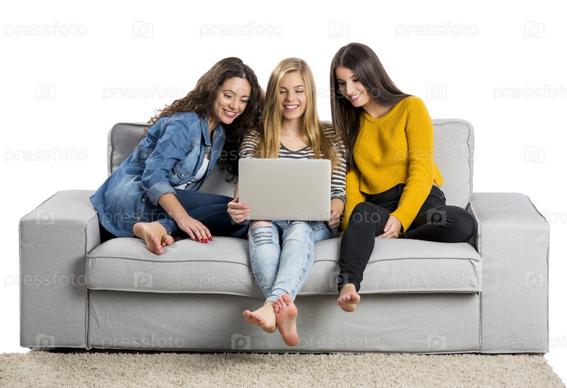 Девочки-подростки используют ноутбук
