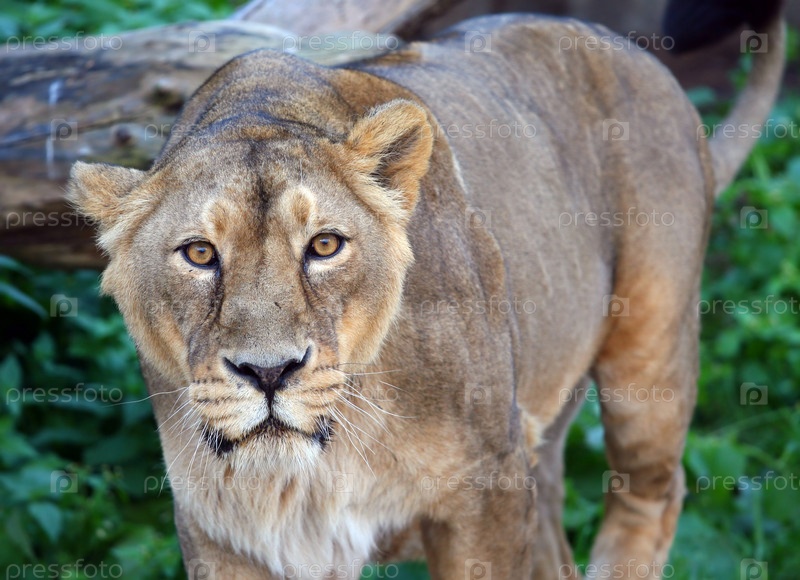 Львица на территории зоопарка
