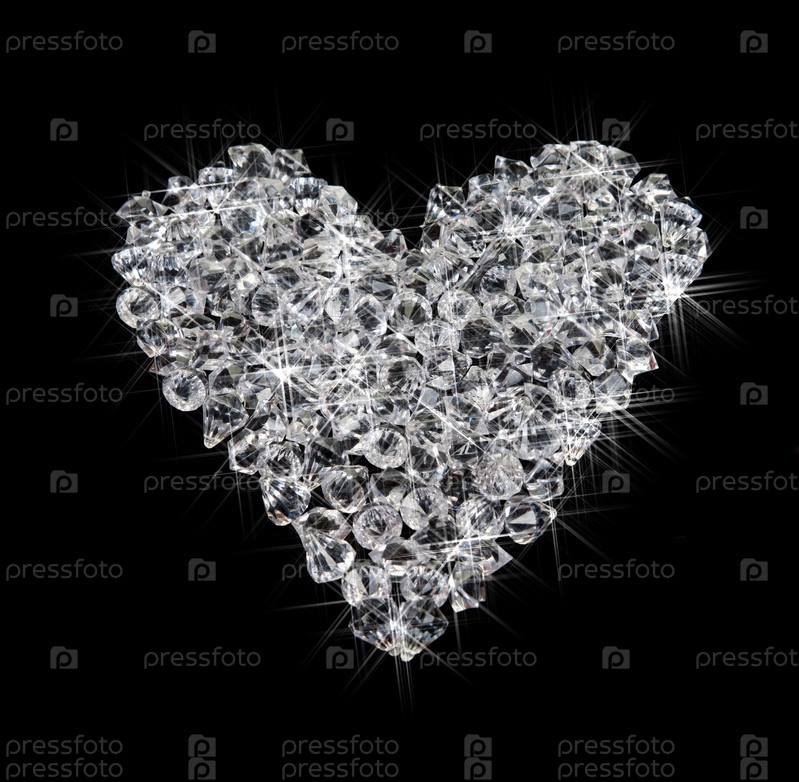 Прекрасное любящее сердце из алмазов на черном фоне