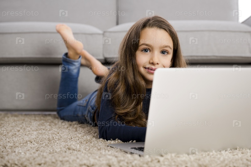 Маленькая девочка работает с ноутбуком