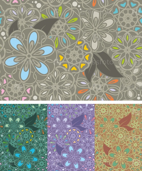 Бесшовный шаблон с цветами в четырех цветовых схемах