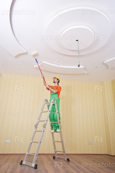 Маляр во время покрасочных работ