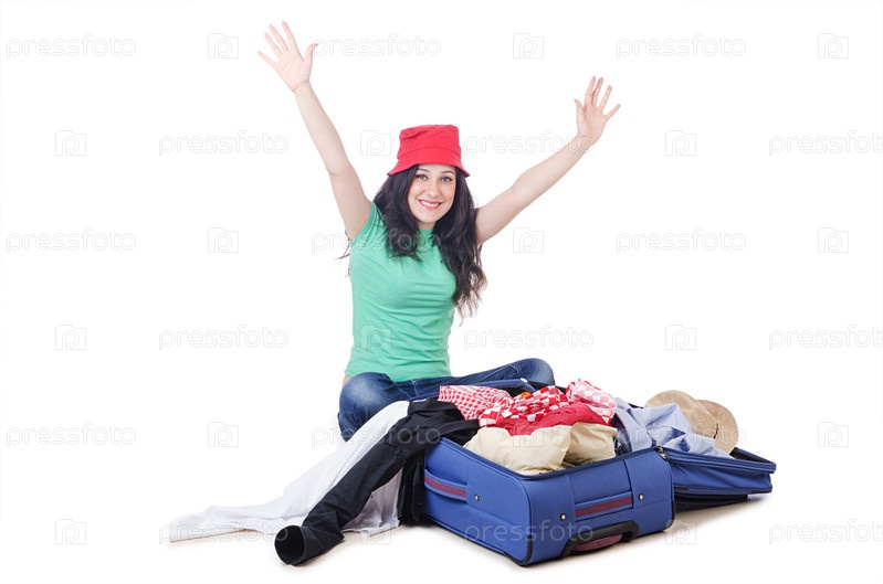 Девушка упаковывает вещи для путешествия