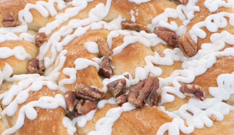 Датский пирог с пеканами и глазурью крупным планом