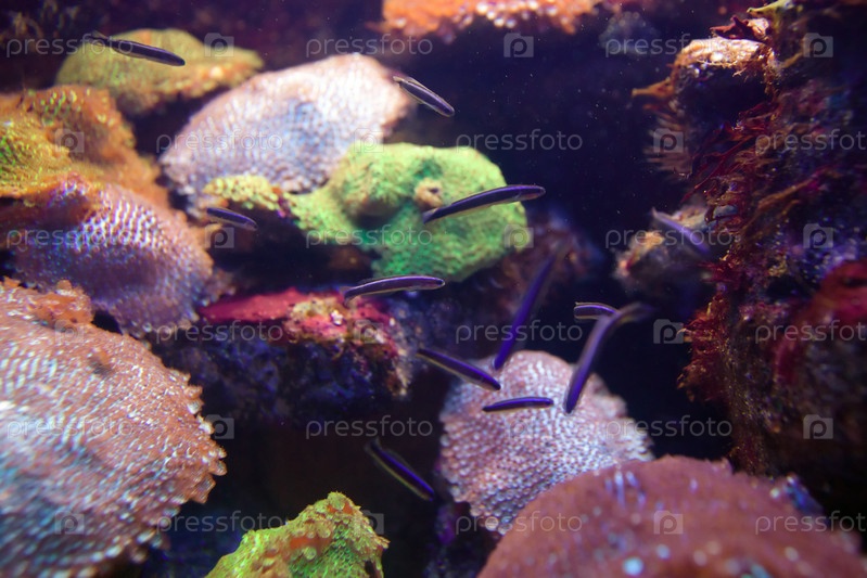 Рыбы, кораллы и анемоны на дне