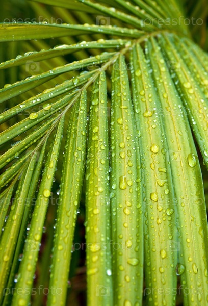 Красивйх зеленый пальмовый лист в тропическом лесу