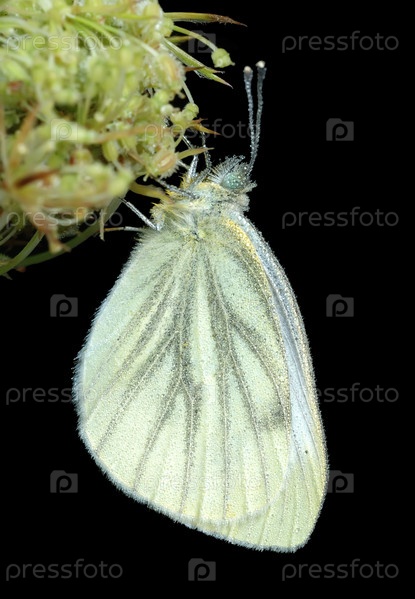 Большая белая бабочка на черном фоне