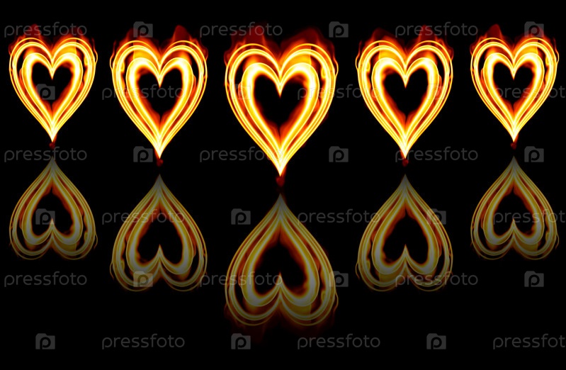 Сердца в огне, символизирующие пылающую страсть и любовь