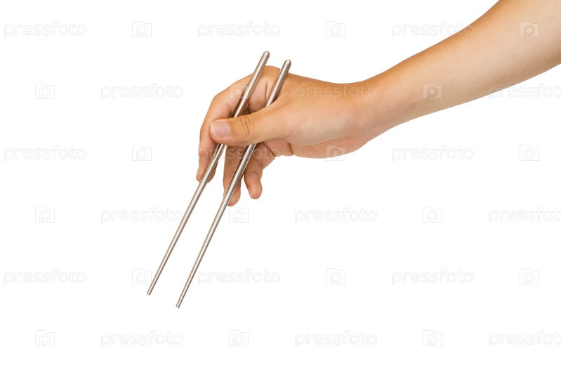 Человеческая рука с палочками, изолированная с контуром отсечения