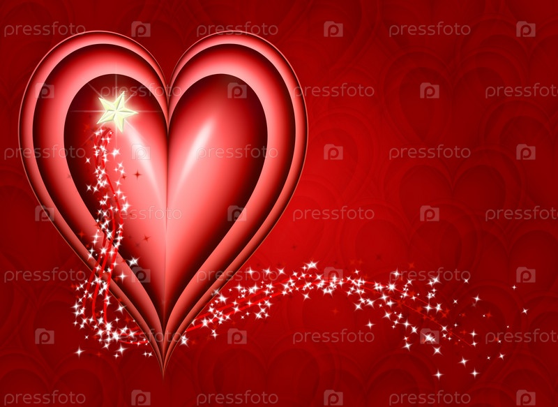 Большое красное сердце с блестящими звездами