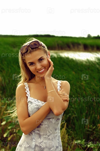 Портрет красивой европейской женщины на фоне тростника