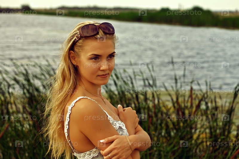 Портрет красивой европейской женщины на фоне тростника