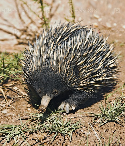 Австралийская ехидна или колючий муравьед гуляет