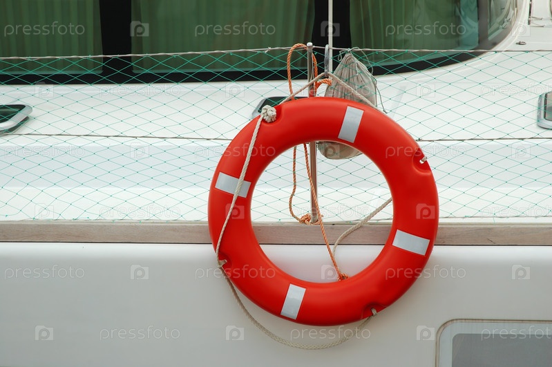 Спасательный красный круг на яхте