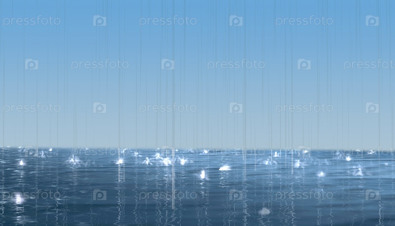Дождь на морской воде и голубое небо. 3D-рендеринг