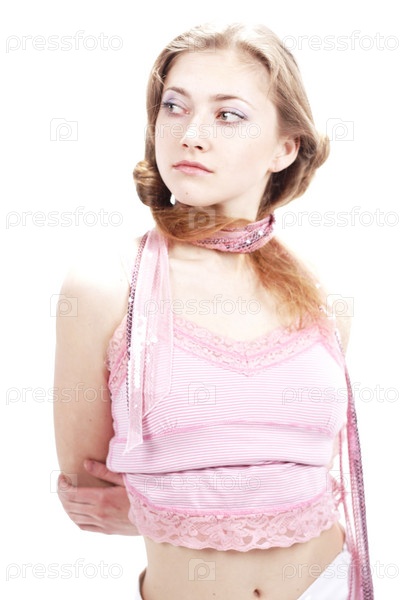 Красивая молодая женщина на белом фоне