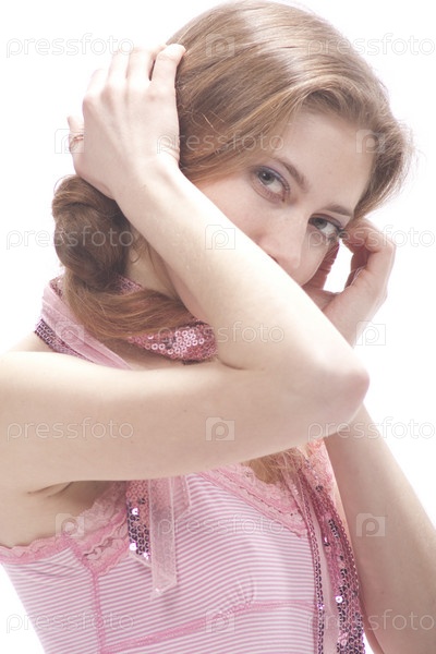 Красивая молодая женщина на белом фоне