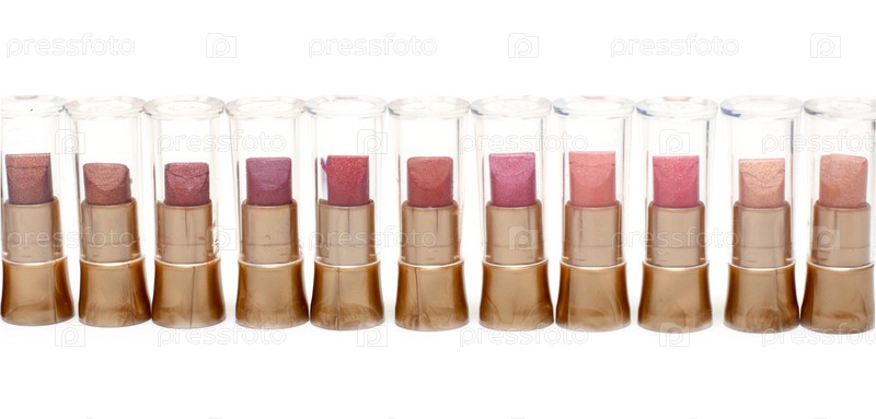 Помады в пластиковом корпусе,на белом фоне