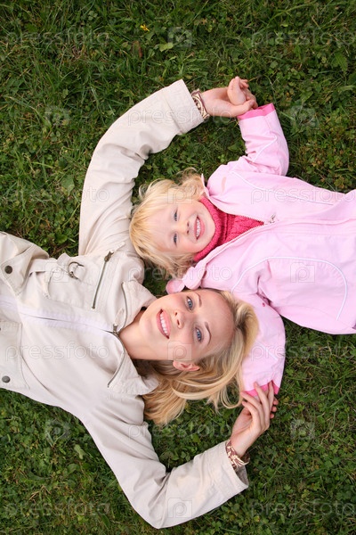 Мать и дочь на траве