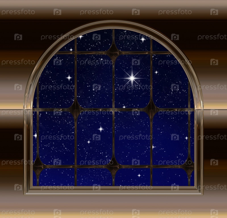 Окно с видом на звездное ночное небо со звездами