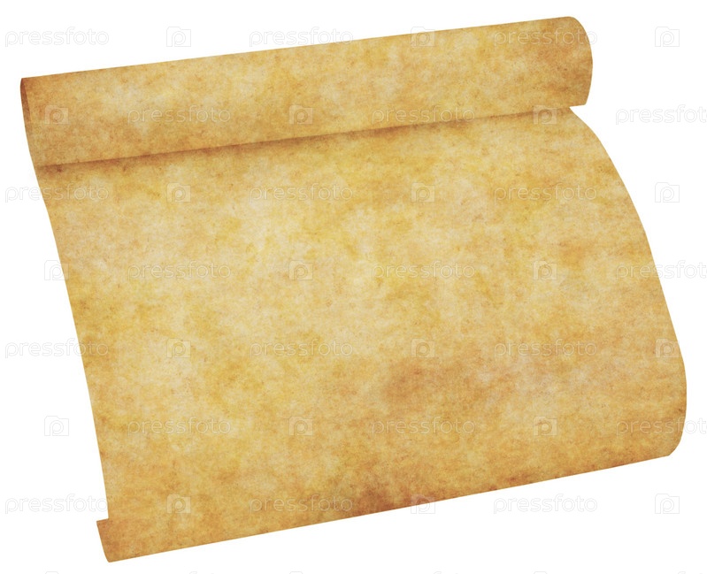 Лист старого скрученного пергамента на белом фоне