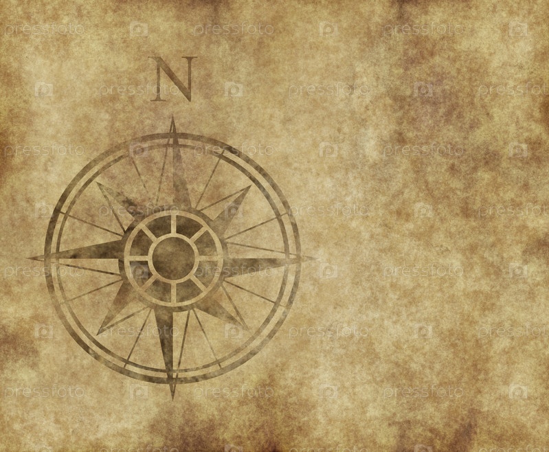 Роза ветров с символом севера на старом пергаменте