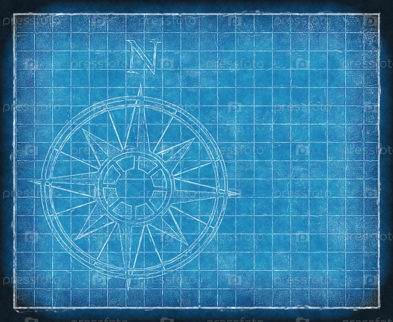 Чертеж с розой ветров, указывающей север