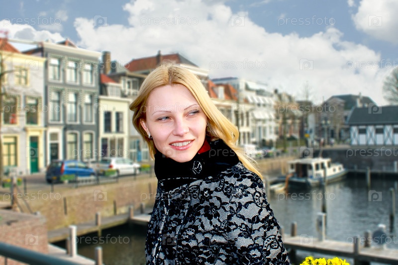 Девушка на набережной в голландском городе Горинхем. Нидерланды